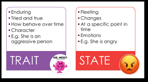 Personality is a “state,” or temporary, short-term, and transient fluctuations in feelings, thoughts, and behaviors, often triggered by emotions or immediate situations. Someone shouts at you and you are now in an angry mood.